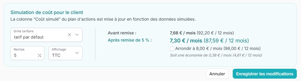 - Le tarif affiché = tarif facturé au client (mensuel)
